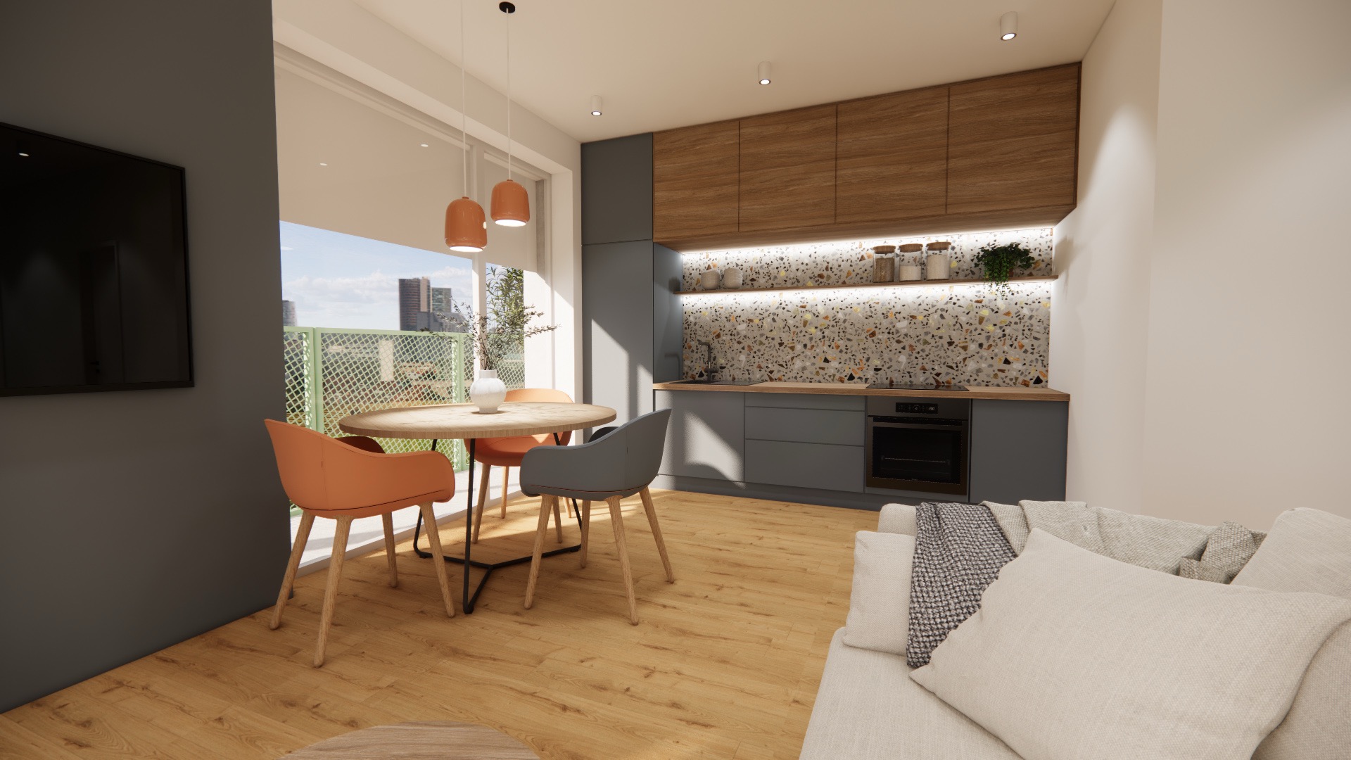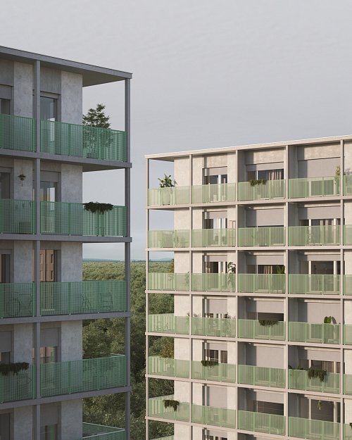 Až na několik málo výjimek má každý byt v projektu k dispozici balkon nebo prostornou terasu. V kombinaci s ideální polohou budov se tak můžete těšit na opravdu krásné otevřené výhledy na město nebo park.