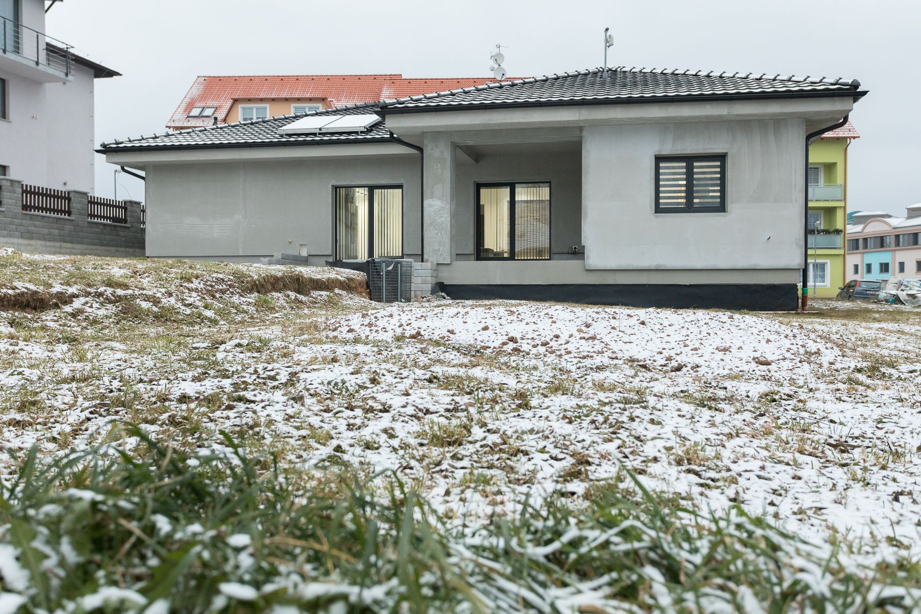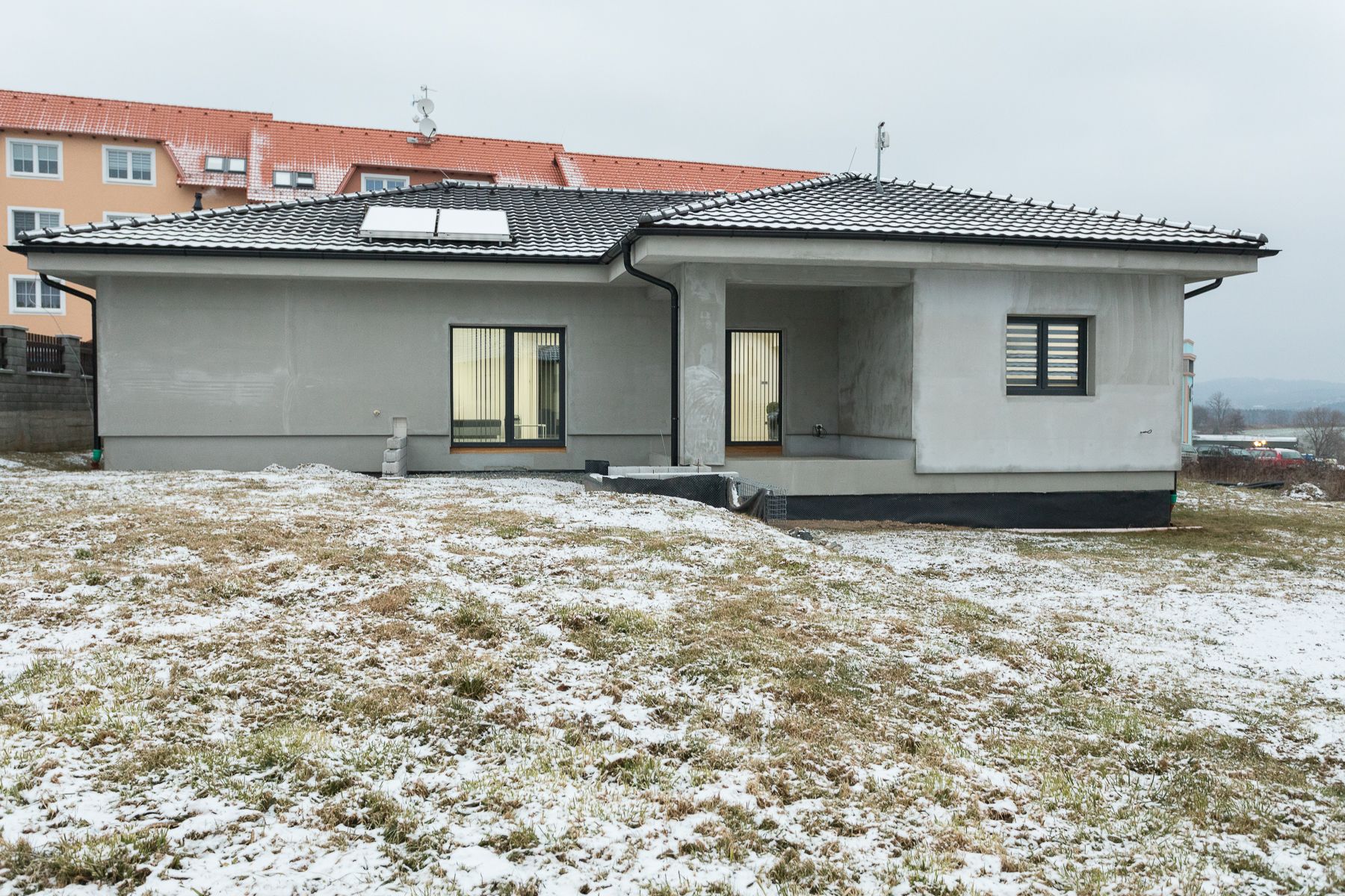 Dovolujeme si Vám představit zajímavou novostavbu rodinného domu o rozloze 187 m2 s dispozicí 4+kk a pozemkem o výměře 801 m2, v okrajové části obce Rozvadov. Přízemní bungalov je zkolaudován v roce 2018, je před dokončením fasády a pozemkových úprav. Zdrojem tepla je plynový kondenzační kotel s podlahovým vytápěním určený také k ohřevu vody kombinovaný se solárním systémem. V interiéru je možné instalovat kuchyňskou linku s přípravou pro volně stojící ostrůvek. Před dokončením je také další koupelna a oddělené WC. Obývací místnost a pokoje disponují moderními designovými prvky. Při plánování interiéru byl kladen důraz na moderní vzhled a variabilitu. Osvětlení je řešeno úspornými LED svítidly s dálkově ovládanými možnostmi úprav jasu, teploty, v dětském pokoji také barev. Ve spojovací chodbě jsou senzorová noční světla. Objekt je napojen na veřejný vodovod, kanalizaci, elektřinu a plyn. Obec Rozvadov disponuje veškerou občanskou vybaveností včetně školy, školky či sportovišť typu fotbalový stadion a tenisové kurty. Okolí Rozvadova láká také svými turistickými cíli a přírodními krásami. Výhodou je dopravní dostupnost sousedního Německa a dálnice D5, pracovní příležitosti nabízí také nedaleké průmyslové parky Nová Hospoda a Ostrov u Stříbra. Pokud Vás zaujala tato nabídka, neváhejte nás kontaktovat pro bližší informace či osobní prohlídku včetně představení zvýhodněných možností financování.